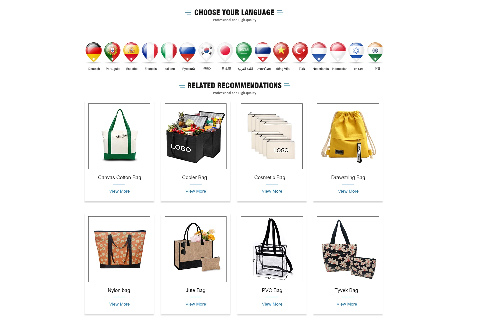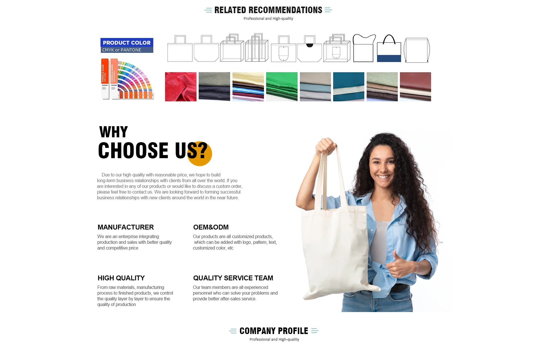 Prodotti principali: Borsa Dupont/Tyvek, borsa in cotone/tela, borsa in tessuto PP, borsa in iuta, borsa in PVC